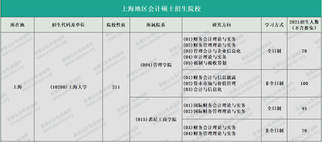 MPAcc擇校:上海大學(xué)、上海國(guó)家會(huì)計(jì)學(xué)院招生、錄取、分?jǐn)?shù)線、學(xué)制學(xué)費(fèi)等情況分析”,從招生人數(shù)、研究方向、學(xué)制學(xué)費(fèi)、