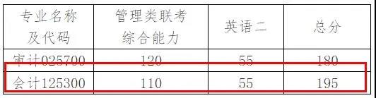 南京大學(xué)2021年會計專碩復(fù)試分數(shù)線為:195/110/55