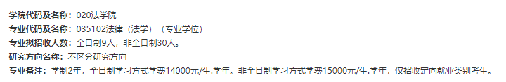 法碩(法學(xué))非全日制:學(xué)制為2年,學(xué)費15000元/生/年