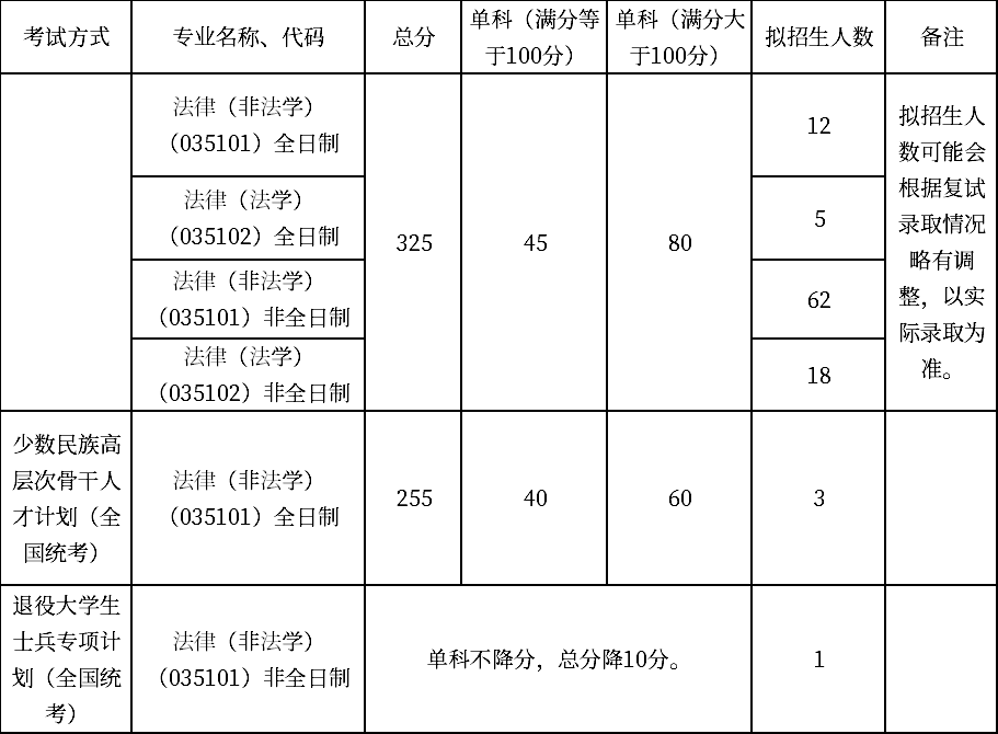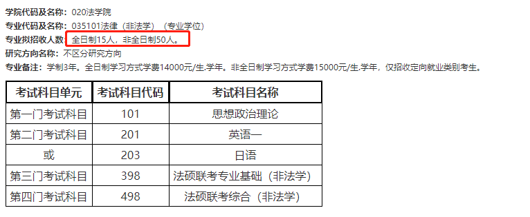 2021年法碩(非法學(xué))全日制招生人數(shù)是15人,非全日制50人