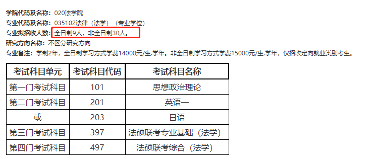 2021年法碩(法學(xué))全日制招生人數(shù)是9人非全日制招生30人