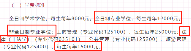 法碩(非法學(xué))非全日制:學(xué)制為3年,學(xué)費(fèi)15000元/生/年