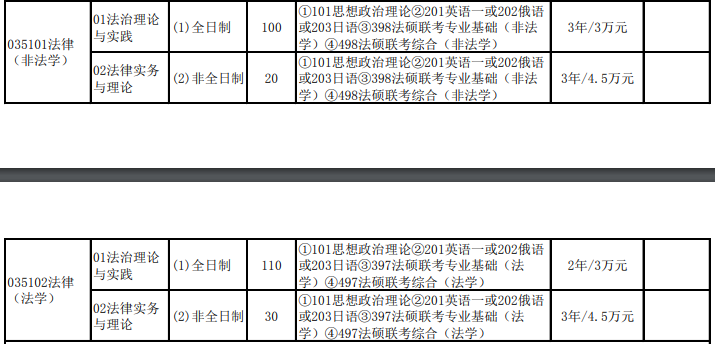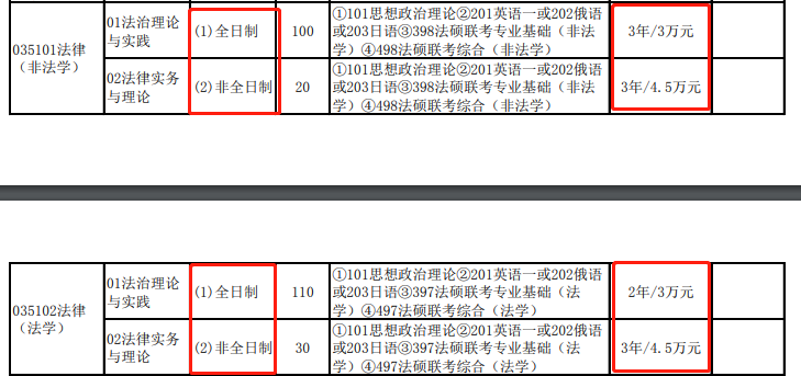 法碩(非法學(xué))非全日制:學(xué)制為3年,學(xué)費(fèi)15000元/生/年