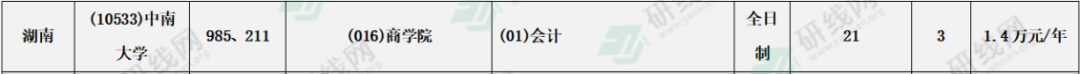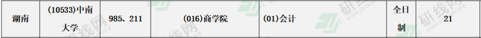 中南大學(xué)2021年會計(jì)專碩全日制計(jì)劃招生21人
