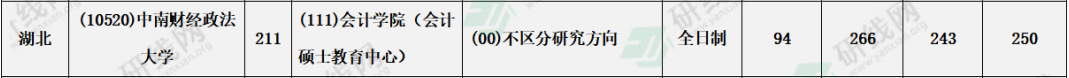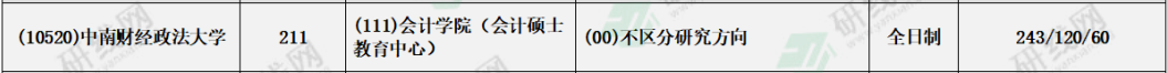 中南財(cái)經(jīng)政法大學(xué)2021年全日制會計(jì)專碩復(fù)試分?jǐn)?shù)線:243/120/60