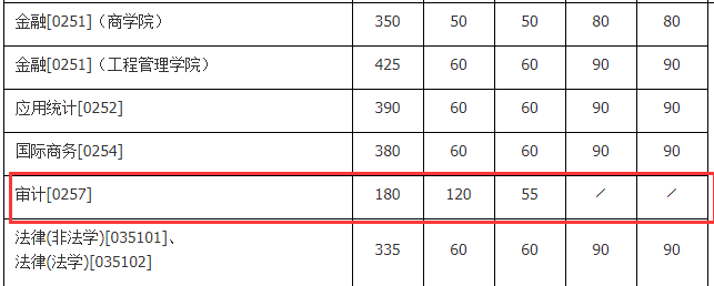 2021年審計碩士專業(yè)計劃招生全日制2人以上人數不包含