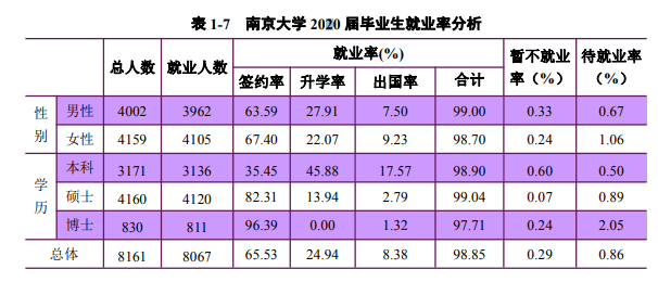 2020年南京大學畢業(yè)生就業(yè)質量報告部分內容: