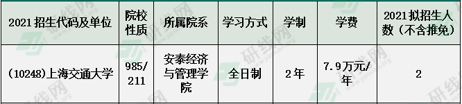 上海交通大學2021年審計碩士專業(yè)全日制擬錄取人數為2人。