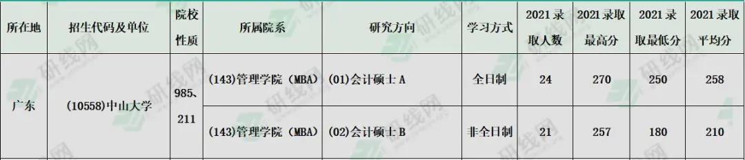中山大學(xué)2021年會計專碩復(fù)試分?jǐn)?shù)線:250/125/65,非全日制提前批分?jǐn)?shù)線179/92/46