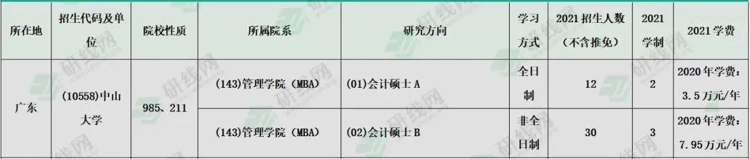 中山大學(xué)全日制會計專碩學(xué)制學(xué)費:學(xué)制為2年,2020年學(xué)費為3.5萬元/年;非全日制會計專碩學(xué)制學(xué)費:學(xué)制為3年,2020年學(xué)費為7.95萬元/年