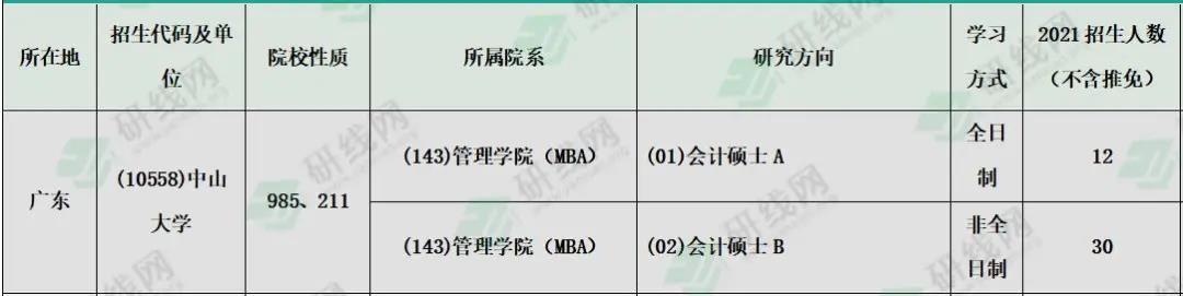 中山大學(xué)2021年全日制會計專碩擬錄取人數(shù)為24人,非全日制會計專碩擬錄取人數(shù)為21人
