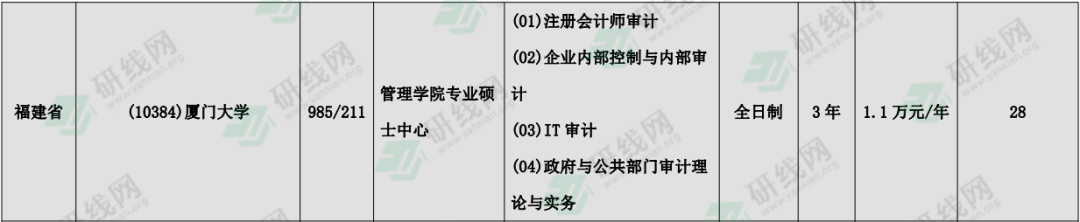 廈門大學(xué)2021年審計碩士專業(yè)全日制擬錄取人數(shù)為31人。
