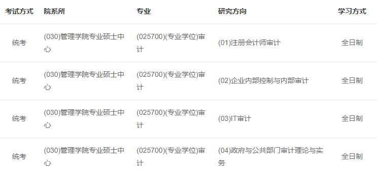 2021年審計碩士專業(yè)計劃招生全日制18人以上人數(shù)不含