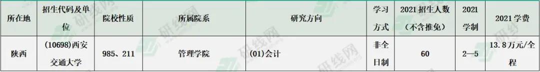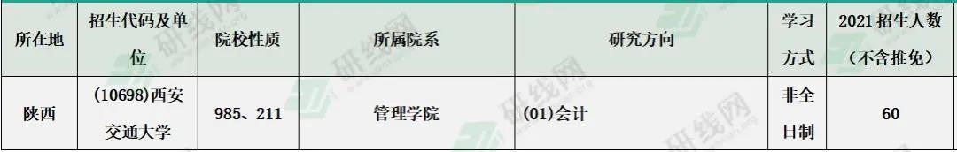 西安交通大學(xué)2021年非全日制會(huì)計(jì)專碩計(jì)劃招生60人