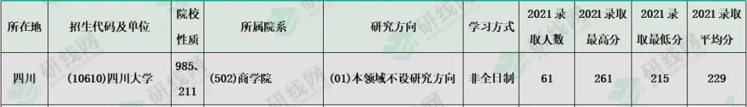 四川大學(xué)2021年非全日制會(huì)計(jì)專碩擬錄取人數(shù)為61人