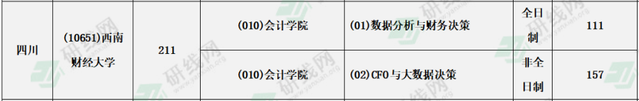 西南財經(jīng)大學2021年全日制會計專碩計劃招生111人;非全日制會計專碩計劃招生157人。