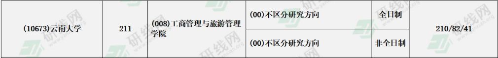 云南大學2021年全日制和非全日制會計專碩復試分數(shù)線:210/82/41
