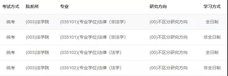 法律(法學(xué))非全日制擬錄取人數(shù)為8人