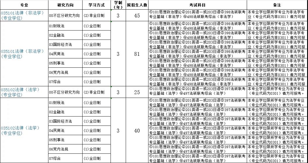 2021年非全日制法律(非法學(xué))擬招生人數(shù)是45人