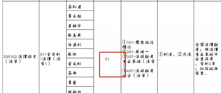 2021年全日制法律(法學(xué))擬招生人數(shù)是61人2021年非全日制法律(法學(xué))擬招生人數(shù)是32人