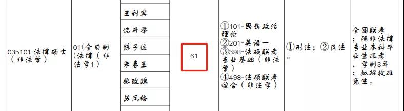 2021年全日制法律(非法學(xué))擬招生人數(shù)是61人