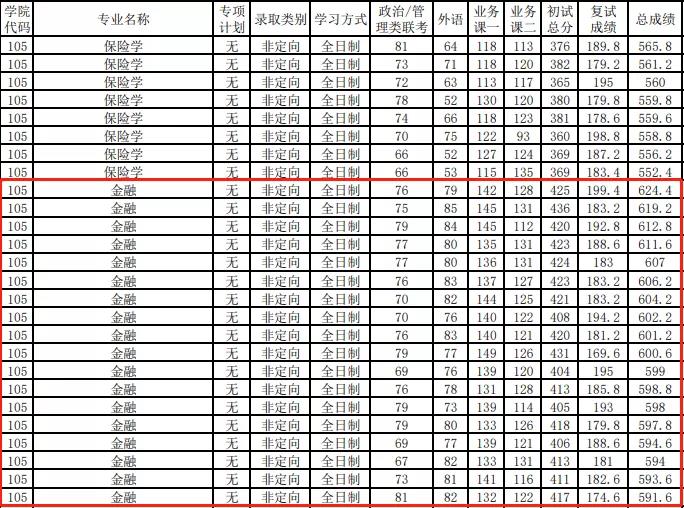 全日制錄取最高分:436分