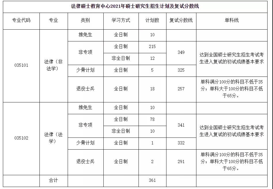法律(非法學):非全日制錄取4人,分別為357分、356分、356分、352分。