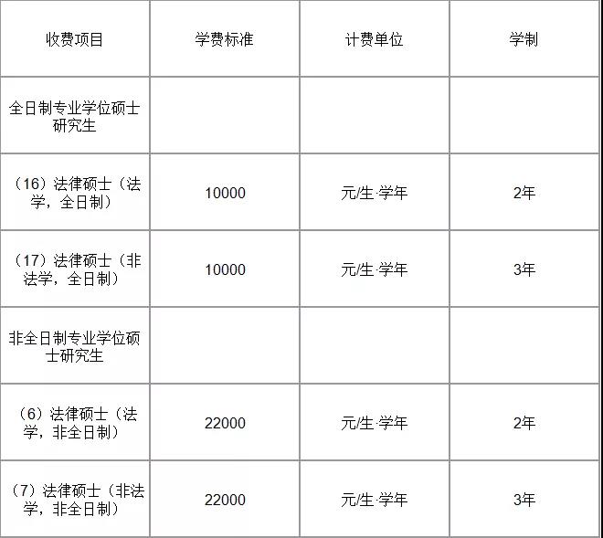 法律(非法學):全日制學制3年,學費10000元/生/年