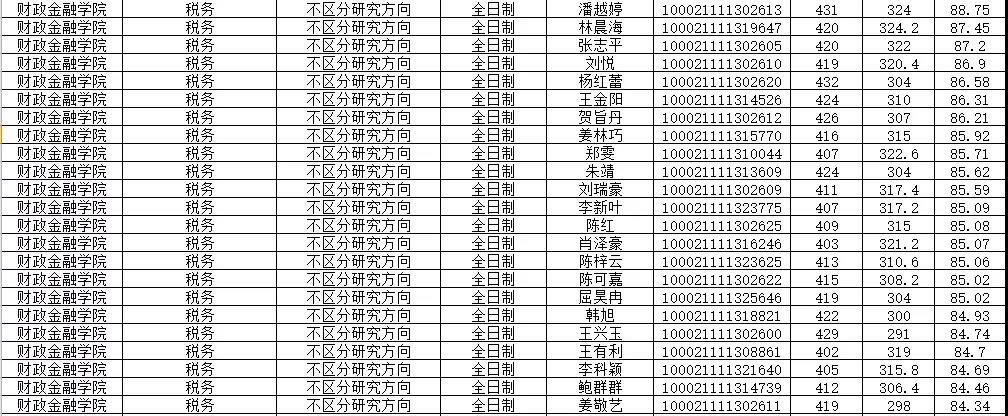 首都經(jīng)濟(jì)貿(mào)易大學(xué)2021年稅務(wù)碩士全日制擬錄取人數(shù)為72人,下面成績(jī)均為初試平均分百分制
