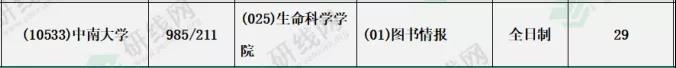 中南大學2021年圖書情報碩士專業(yè)全日制擬錄取人數為29人。