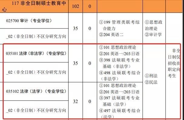 2021年非全日制法律(法學(xué))擬招生人數(shù)是32人