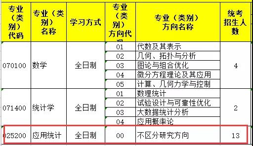 2022年應用統(tǒng)計碩士專業(yè)計劃招生全日制13人