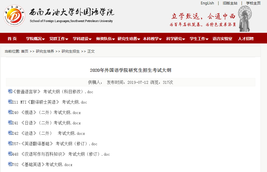 西南石油大學(xué)2020年外國(guó)語(yǔ)學(xué)院研究生招生考試大綱