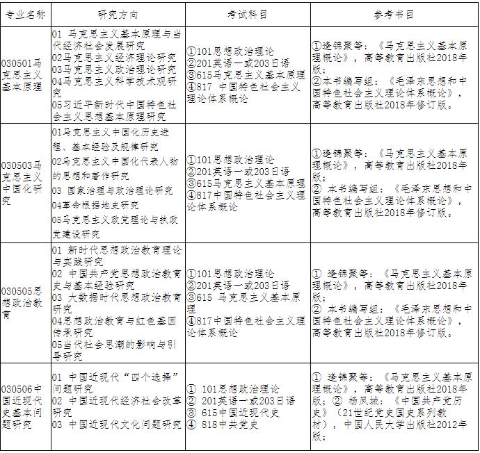 2021年馬克思主義學(xué)院碩士研究生招生目錄: