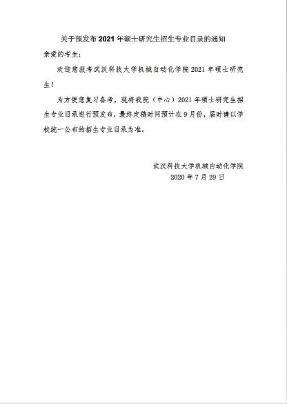 原文標(biāo)題:關(guān)于預(yù)發(fā)布機(jī)械自動(dòng)化學(xué)院2021年碩士研究生招生專(zhuān)業(yè)目錄的通知