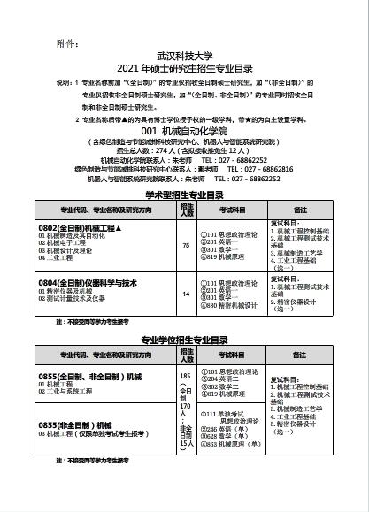 以上就是“2021考研專(zhuān)業(yè)目錄:武漢科技大學(xué)機(jī)械自動(dòng)化學(xué)院2021年碩士研究生招生專(zhuān)業(yè)目錄”的全部?jī)?nèi)容!祝您考研成功!