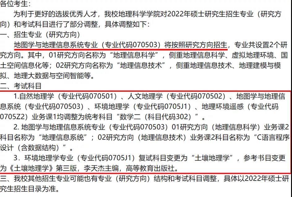 2022考研科目調(diào)整:南京師范大學(xué)地理科學(xué)學(xué)院調(diào)整入學(xué)考試科目通知”的相關(guān)內(nèi)容,希望對大家有所幫助!