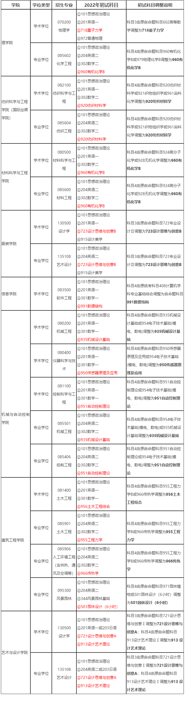 我校擬對(duì)2022年碩士研究生招生考試的部分初試科目進(jìn)行調(diào)整,為便于各位考生提前做好復(fù)習(xí)準(zhǔn)備,現(xiàn)將擬調(diào)整方案公布如下: