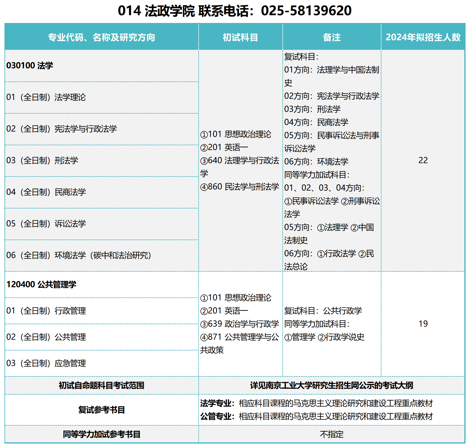 2024考研專業(yè)目錄:南京工業(yè)大學(xué)法政學(xué)院2024年碩士研究生招生專業(yè)目錄”的全部?jī)?nèi)容!祝您考研成功!更多相關(guān)信息請(qǐng)持續(xù)關(guān)注本網(wǎng)站!