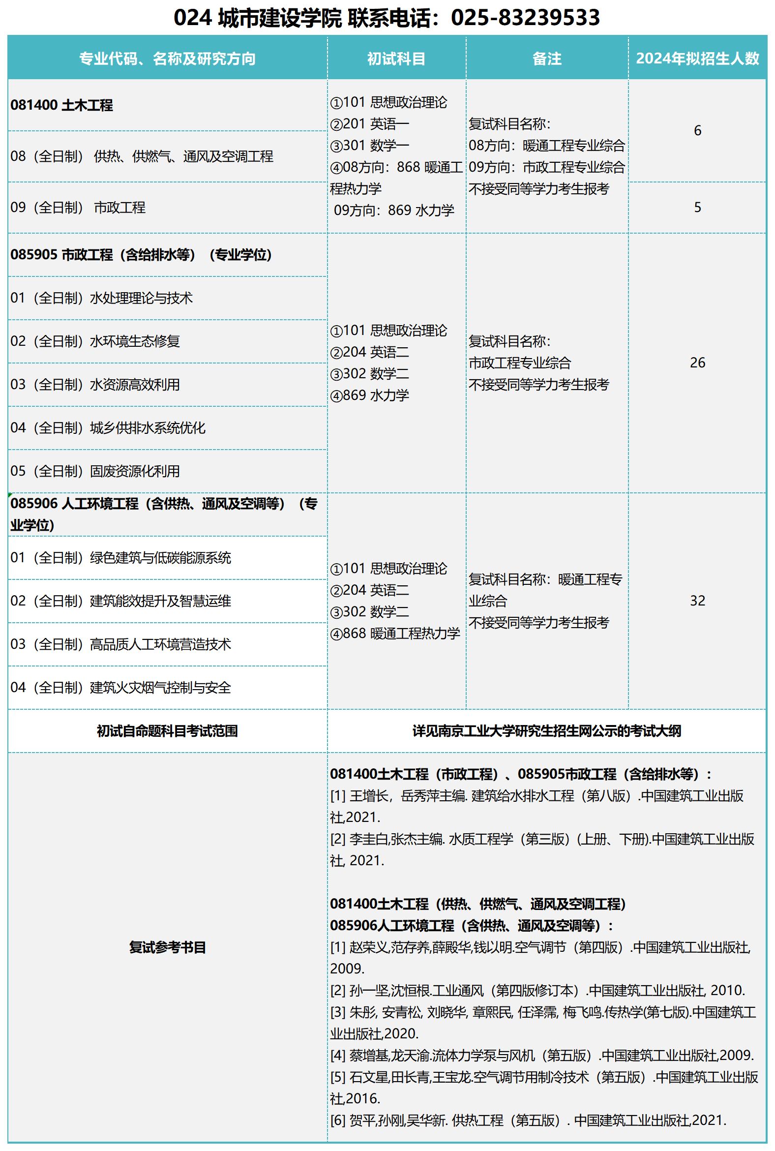 2024考研專業(yè)目錄:南京工業(yè)大學(xué)城市建設(shè)學(xué)院2024年碩士研究生招生專業(yè)目錄”的全部?jī)?nèi)容!祝您考研成功!更多相關(guān)信息請(qǐng)持續(xù)關(guān)注本網(wǎng)站!