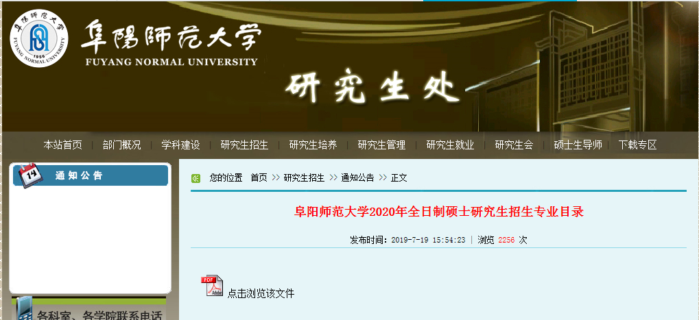 【點擊查看】阜陽師范大學(xué)2020年全日制碩士研究生招生專業(yè)目錄
