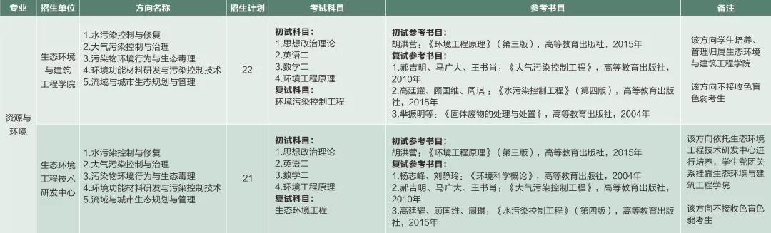 參照2019年招生計劃,我校2020年擬招生79人,其中計算機科學與技術(shù)擬招生36人,由計算機科學與技術(shù)學院負責招生;資源與環(huán)境擬招生43人,由生態(tài)環(huán)境與建筑工程學院和生態(tài)環(huán)境工程技術(shù)研發(fā)中心負責招生。