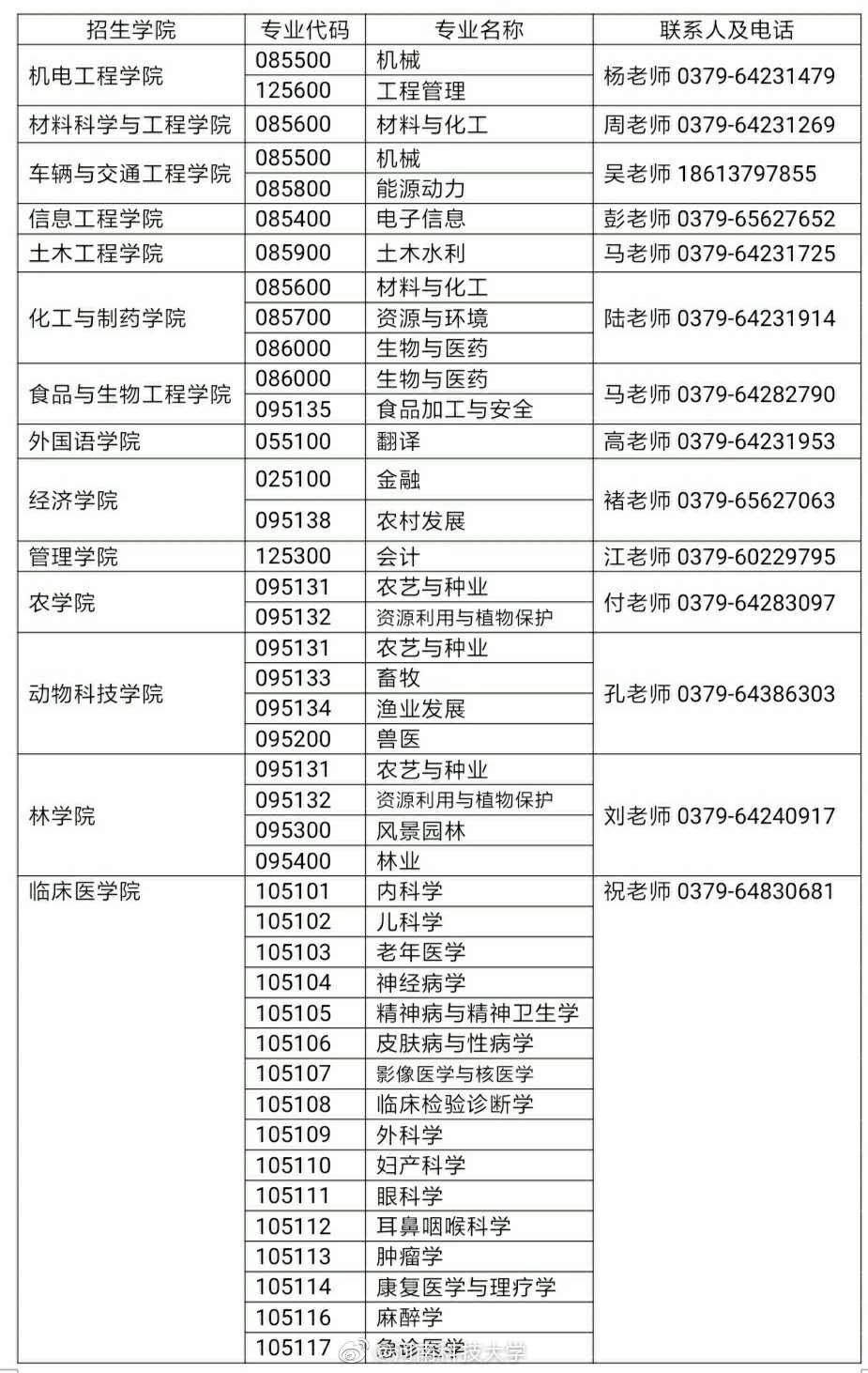 河南科技大學(xué)2020年非全日制專業(yè)學(xué)位碩士研究生招生專業(yè)目錄