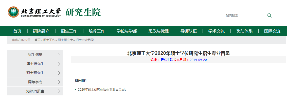 2020年碩士研究生招生專業(yè)目錄陸續(xù)已出,今天小編給大家整理的是“北京理工大學(xué)2020年碩士學(xué)位研究生招生專業(yè)目錄”的相關(guān)內(nèi)容,有報考意愿的小伙伴要注意下哦!